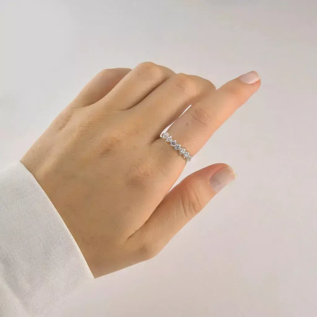 Anel Aparador Cravejado de Prata 925, tem a largura de 2 mm com 2mm de diâmetro da pedra, este modelo tem sete pedras zircônias brancas na parte de cima da peça, e é de um material de excelente qualidade e durabilidade.