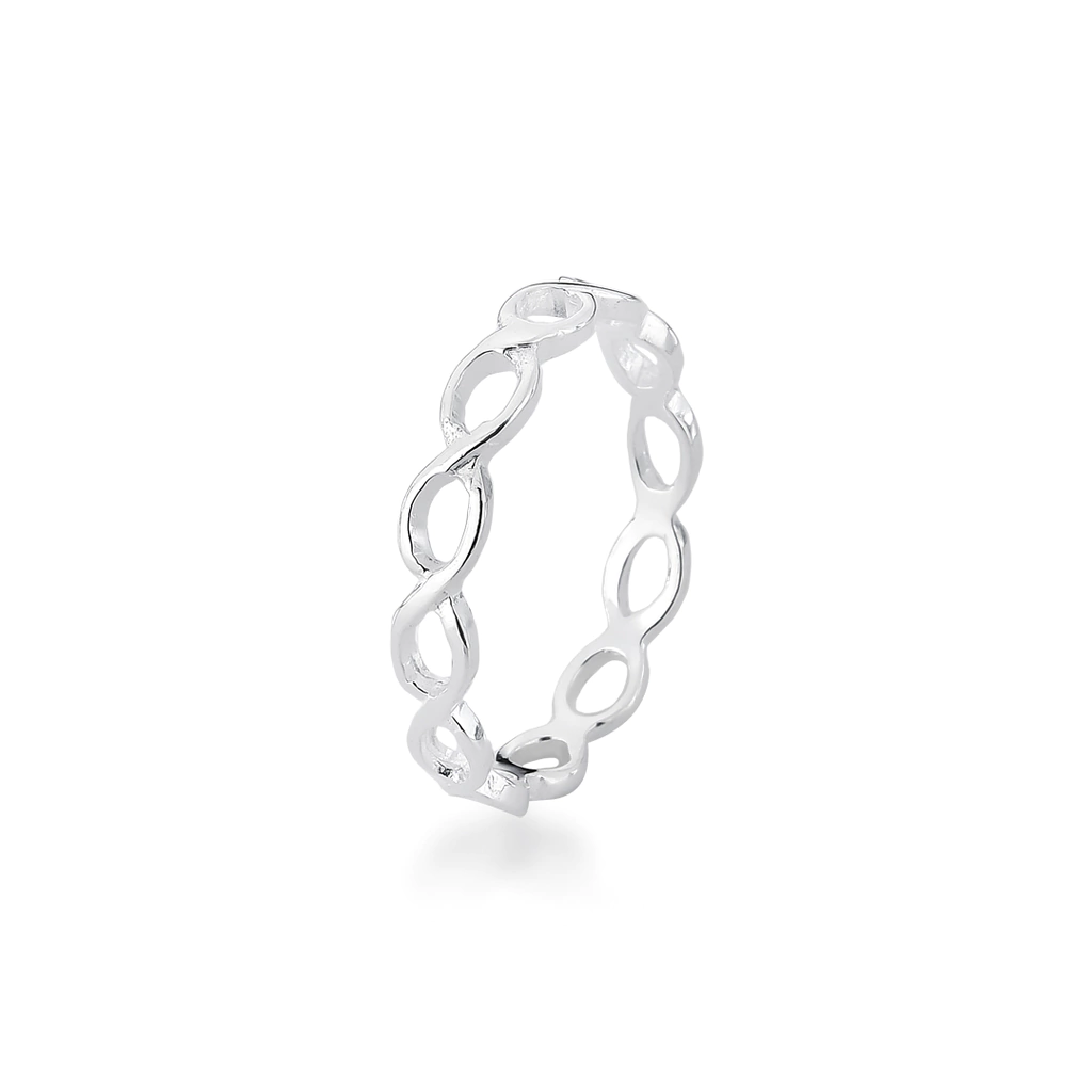 Anel Elo Infinito Liso de Prata 925, com a espessura de 3,3mm, é constituido por vários simbolos do infinito, além de ser feito com um material de excelente qualidade de durabilidade.