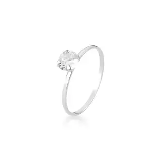 Anel Solitário Ponto de Luz Cristal de Prata 925, composto de prata liso com um pedra em forma de anel solitário com o pedra preso por 4 garras;