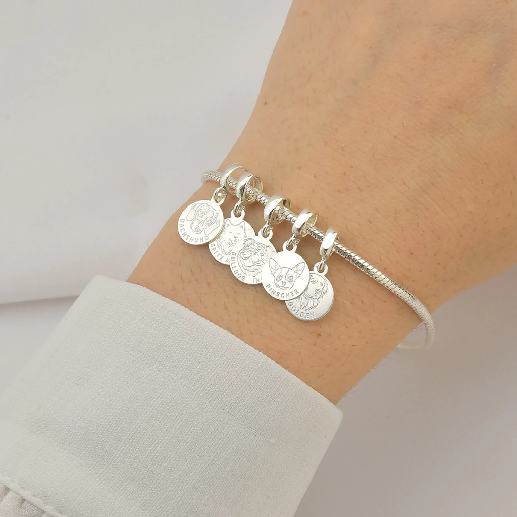 Berloque Círculo Golden Laser Liso de Prata 925, este berloque é composto por prata liso em forma de círculo com um cachorro Golden gravado com laser, com uma argola;