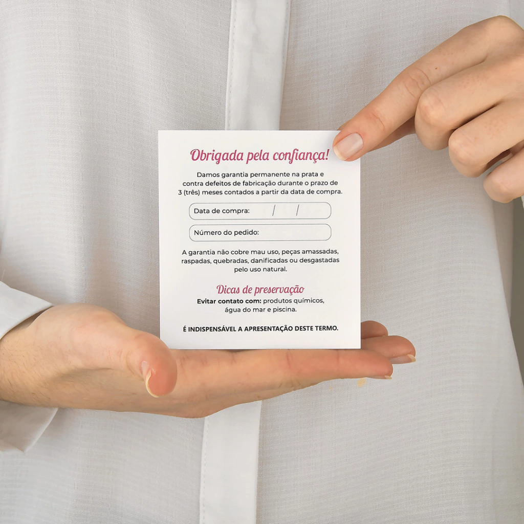 Nossas peças de Prata 925 são enviadas com Certificado de Garantia de Autenticidade da Prata 925, garantimos que nossa Prata tenha duração permanente no material. Diferentemente de Bijuterias, Joias em Prata 925 tem Duração Eterna assim como Ouro 18k.