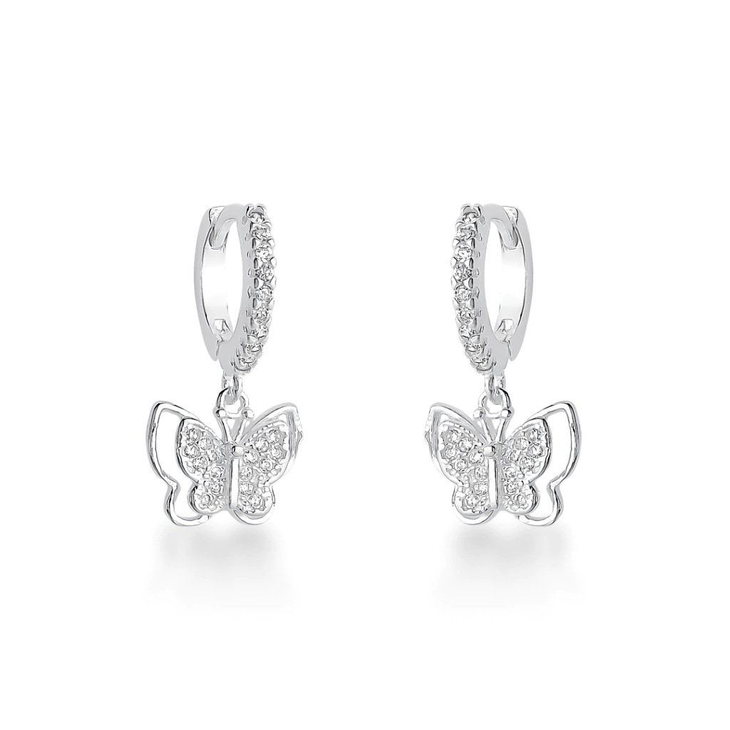 Brinco Argola Cravejada Borboleta de Prata 925, vem com um par de peças lindas e com acabamento perfeito em formato de argola cravejada com borboleta, vem com o fecho de encaixe, além de ser feito com um material de excelente qualidade e durabilidade.