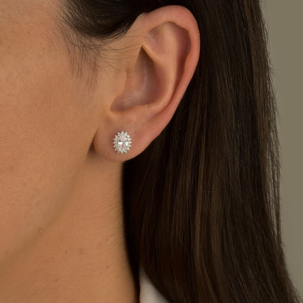 Brinco Ponto de Luz Oval Cravejado Cristal de Prata 925, vem com um par de peças lindas e com acabamento perfeito em formato de oval preso por prata cravejado, vem com o fecho de tarracha, além de ser feito com um material de excelente qualidade e durabilidade.