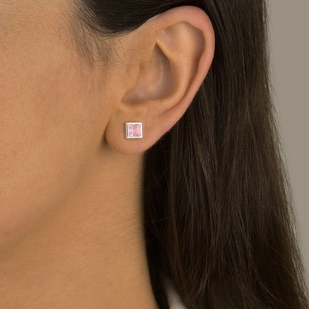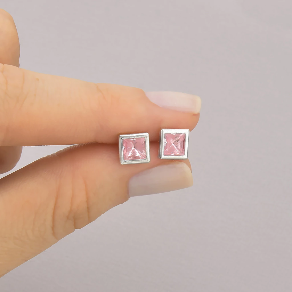 Brinco Quadrado 6mm Rosa de Prata 925, vem com um par de peças lindas e com acabamento perfeito em formato de quadrado composto por uma pedra quadrado preso por uma moldura de metal banhado, vem com o fecho de tarracha, além de ser feito com um material de excelente qualidade e durabilidade.