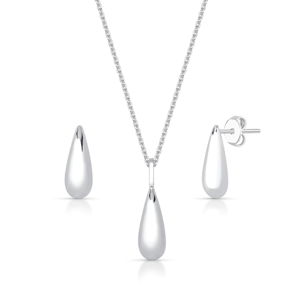Conjunto Gota Alongado 14mm Liso de Prata 925, esse produto vem com pingente e brinco Gota Alongado 14mm Liso, que é composto por prata liso em forma de uma gota d'agua alongado;