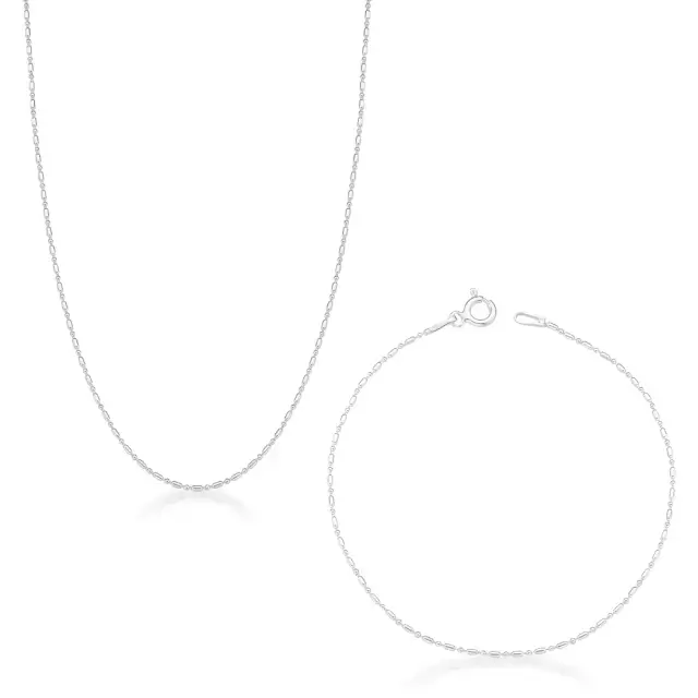 Conjunto Bead + 1 de Prata 925, esse produto é feito com corrente e pulseira, que é composto por prata 925 lisa em forma de bead e pílula repetindo;