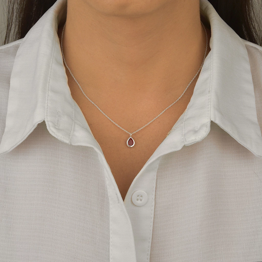 Gargantilha Ponto de Luz Gota Vermelho de Prata 925, esse produto usa corrente de prata veneziana, vem com Pingente Ponto de Luz Gota, que é composto por gota d'agua feito de pedra preso por uma borda de prata liso;