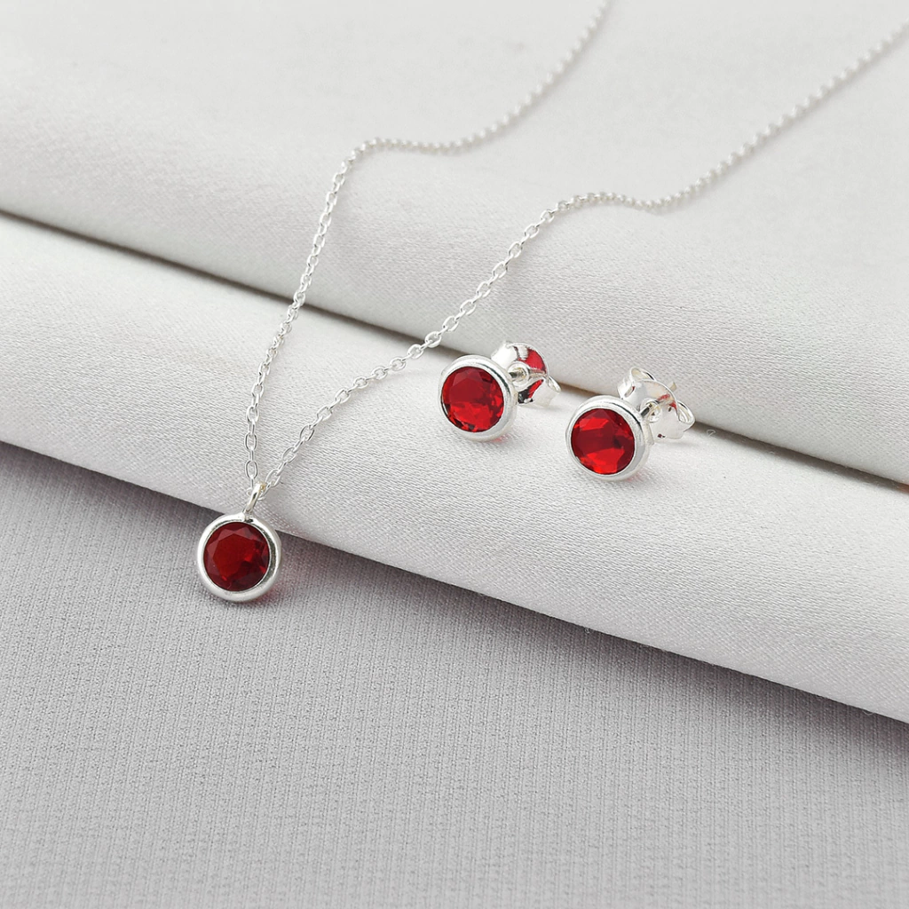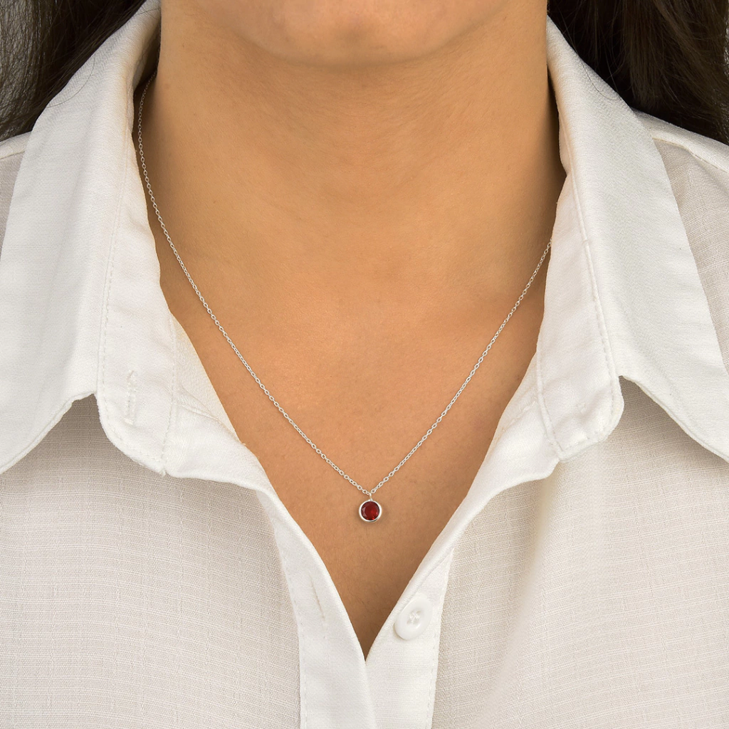 Gargantilha Ponto de Luz Vermelho de Prata 925, vem com Pingente Ponto de Luz, que é composto por uma pedra redondo preso por uma borda de prata liso;