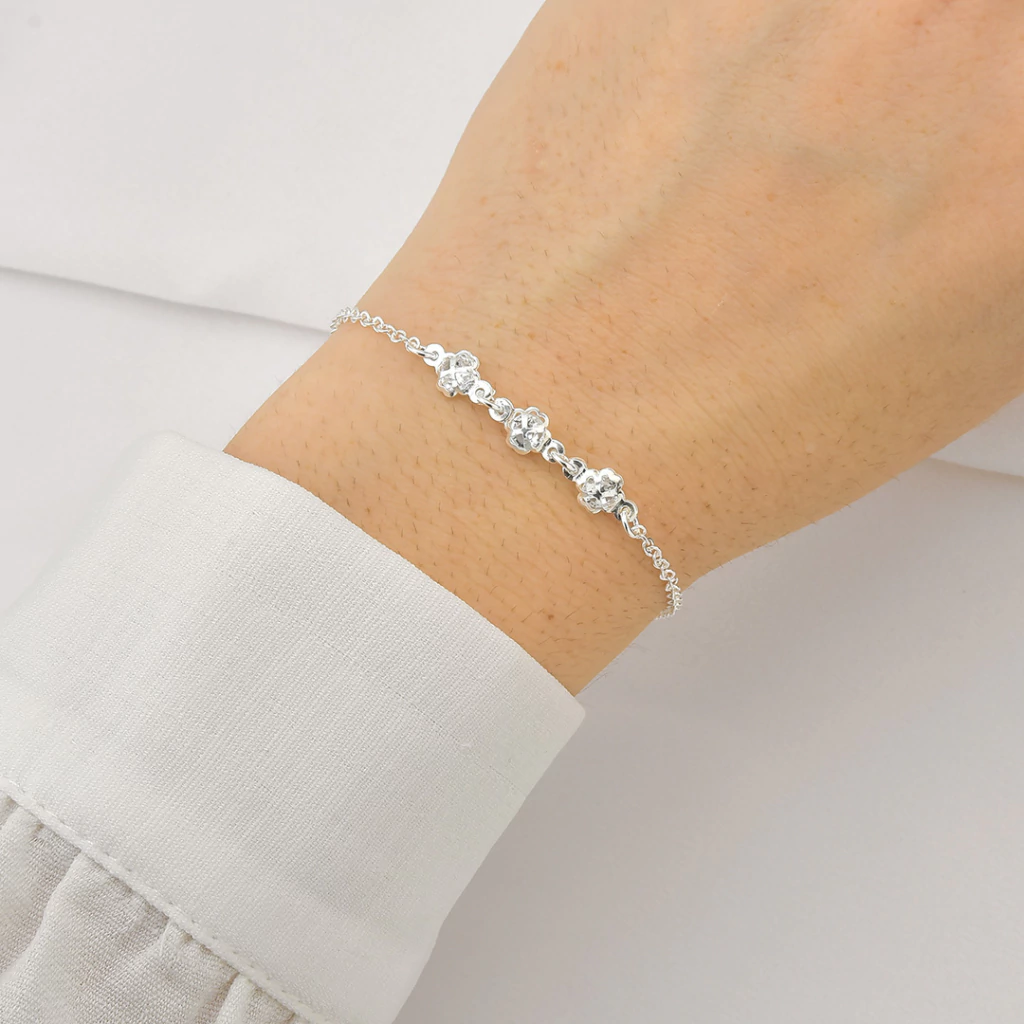 Pulseira 3 Pontos de Luz Trevo 5mm Cristal de Prata 925, esse produto é feito com um corrente elo portugues 040, vem com 3 pingentes, que é composto por um pedra preso por prata liso em forma de trevo de quatro folhas;