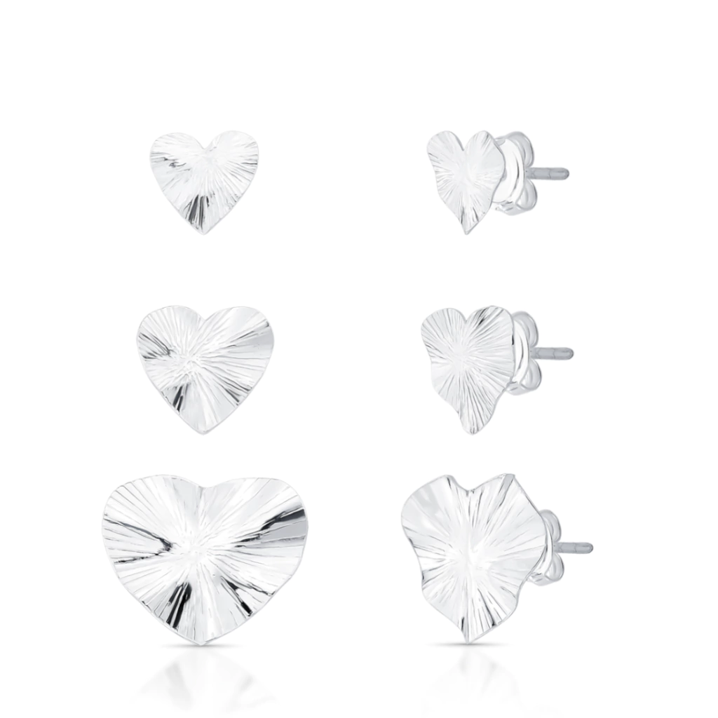 Trio de Brinco Coração Folha Martelado de Prata 925, vem com 3 peças lindas, com acabamento perfeito e vem com o fecho de tarracha, além de ser feito com um material de excelente qualidade e durabilidade.
